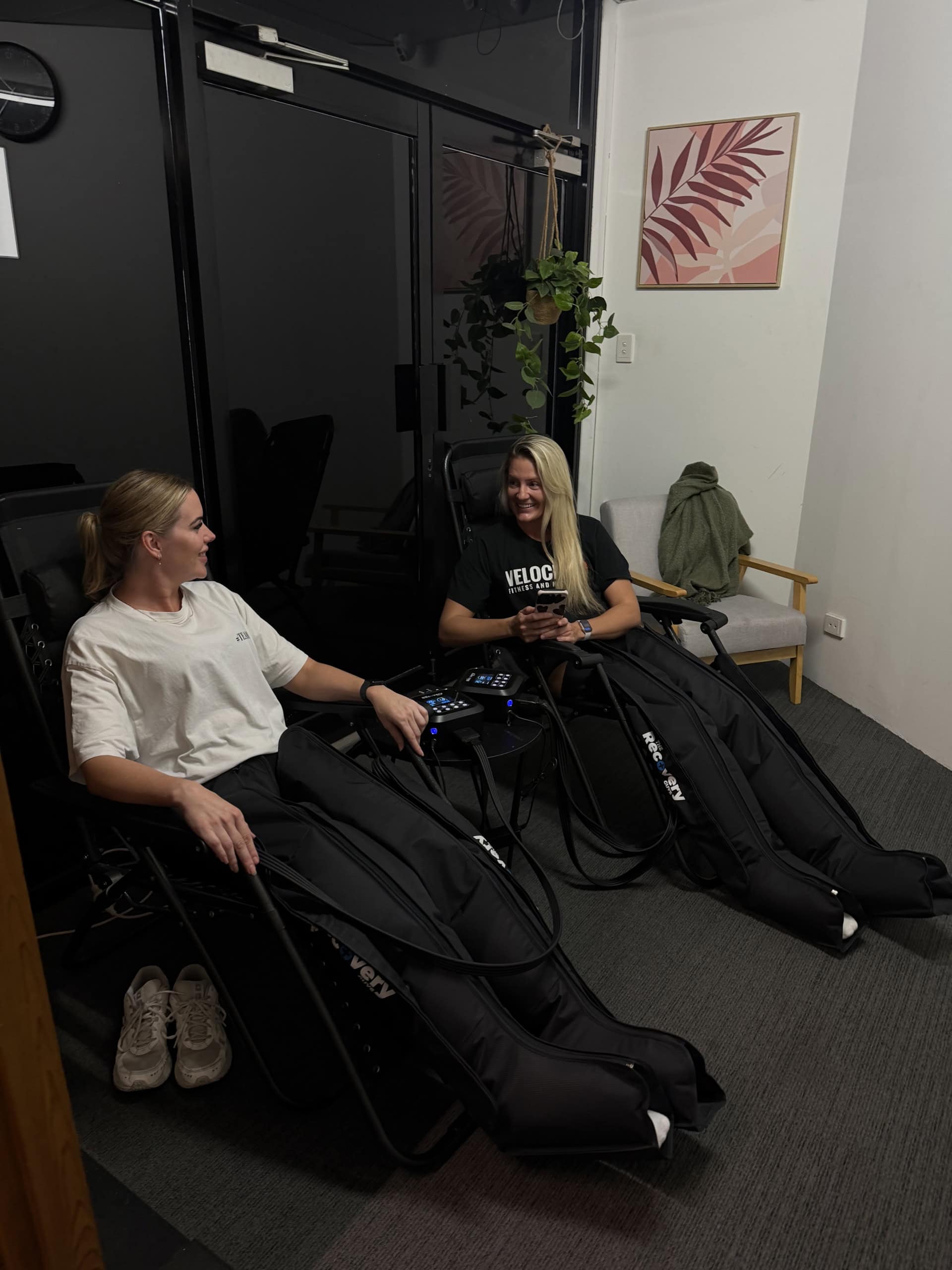 NEED A QUIET PLACE TO RELAX, REJUVENATE & RECOVER AFTER YOUR SESSION? THE STOMPING GROUND HAS YOU COVERED! OUR RECOVERY ROOM IS EQUIPPED WITH TWO PAIRS OF COMPRESSION BOOTS, ZERO GRAVITY CHAIRS, AND A 3 PERSON INFRARED SAUNA. OUTSIDE WE HAVE TWO SINGLE PERSON ICE BATHS ALONGSIDE TWO SEPARATE OUTDOOR SHOWERS!
